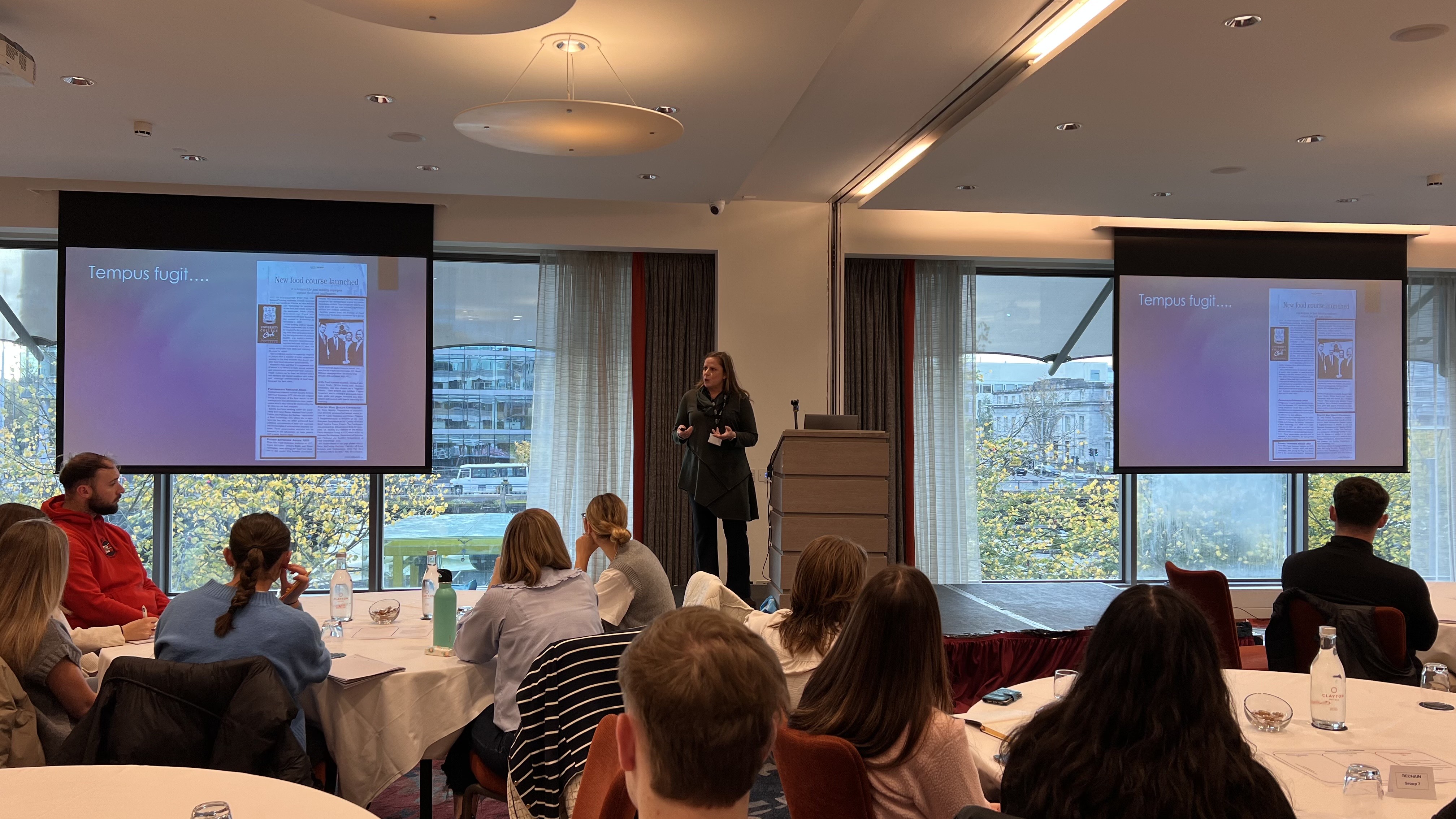 Dr. Orlagh Reynolds and Dr. Seamus O’Reilly ran the second annual Circular Supply Chain Hackathon in the Clayton Hotel on Tuesday, October 21st, 2025. A total of 85 final-year Food Marketing and Entrepreneurship and Commerce undergraduates took part in a fast-paced and highly interactive ideation session, guided throughout the day by industry guest speakers and mentors from leading organisations such as 3SIXTY, Bord Bia, An Rialálaí Agraibhia, and the Irish Food Board.