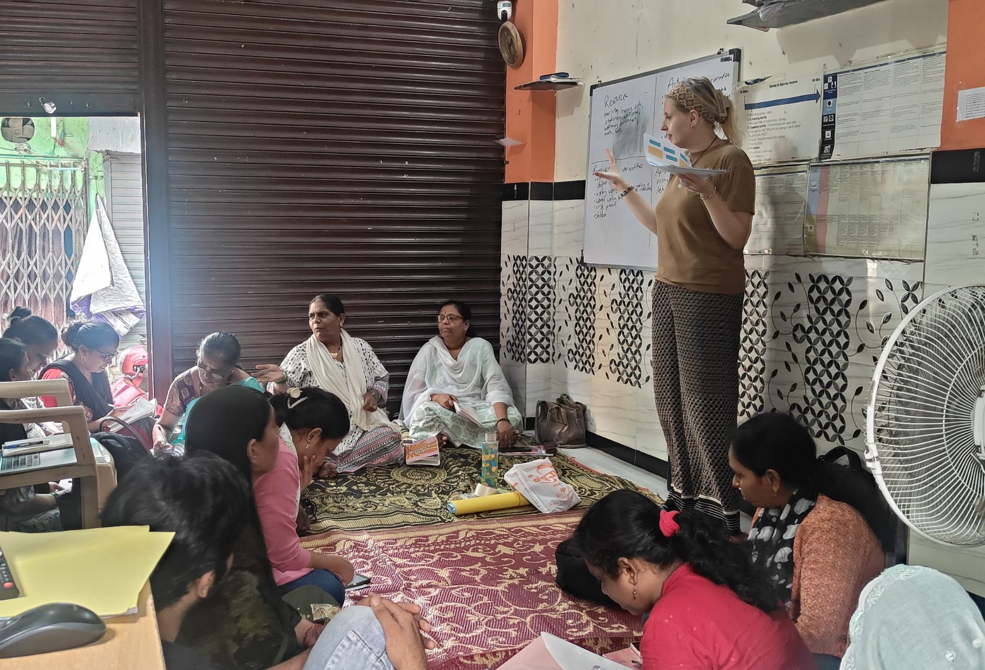 "I did my work placement at Apnalaya in Mumbai, India. Apnalaya has worked with Mumbai’s urban poor for over 50 years. Their goal is to empower individuals and the community to help themselves through various initiatives across the themes of health and disability, education and livelihood, and citizenship and advocacy. I was part of the education and livelihood department where I documented people’s stories of change, especially of women entrepreneurs in Apnalaya programmes. With these stories, I created a coffee table book to showcase their stories and to show stakeholders the impact of Apnalaya‘s programmes. The livelihoods programme was expanded during my time there, so I was also tasked with creating a coherent workshop series for the set up and training of Community Childcare Centres and was also able to hold a workshop with the field staff. I also supported the education team in monitoring the quality of education projects and develop a new curriculum for their spoken English classes. I had a great time with Apnalaya in Mumbai. They provided me with the opportunity to apply the skills I learned in college in a real-world setting and believed in me expanding my skill set. I had a great mix of working in the main office and going out to the field offices and communities which gave me the opportunity to understand the circumstances Mumbai‘s urban poor live in and connect with community members."